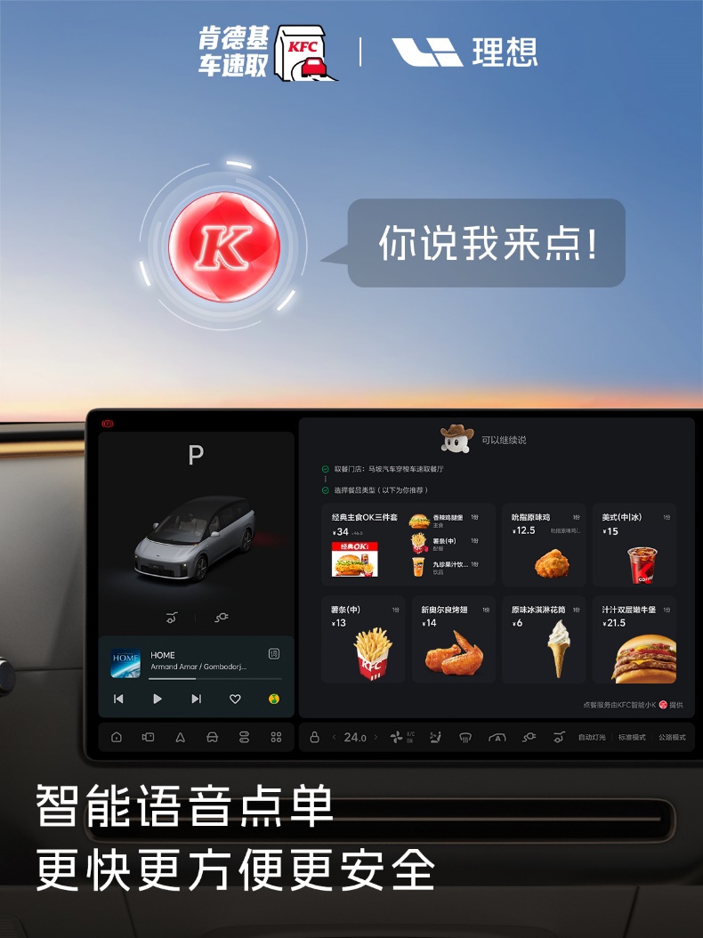 9月26日,肯德基与理想汽车正式宣布达成战略合作,推出行业内首个A2A(Agent to Agent)智能点餐落地应用,由理想汽车的智能Agent理想同学召唤肯德基智能Agent小K,共同为用户打造“语音指令发起—餐品推荐—下单支付 —取餐预约”的全链路无缝服务体验。